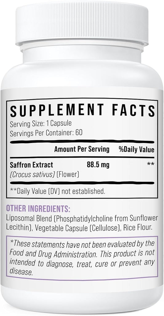 Pure Liposomal Saffron Extract Supplements - High Bioavailability, 88.5 mg - 480 Veggie Capsules - USA Made