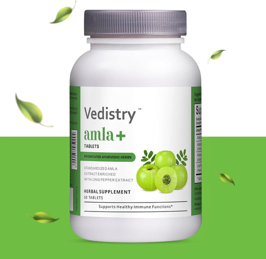 Vegan Amla & Long Pepper Immune Support Tablets 1100mg - 60 Count Pack - Herbal Supplement for Wellness & Vitality Booster
