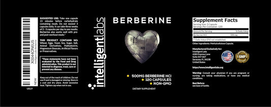 120 Capsules of Intelligent Labs Berberine HCL Plus - 500mg per Capsule