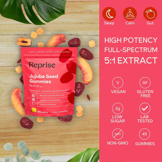 300mg Full-Spectrum Jujube Seed Daily Gummies for Relaxation & Sleep - 100% Plant-Based Vegan, Peach Flavored - 45 Gummies
