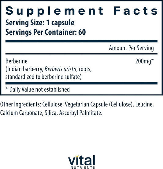 Berberine Capsules 200mg - Supports Healthy Bowel Function & Normal Triglyceride Levels - Vegan, Gluten, Dairy, Soy Free - 60 Count