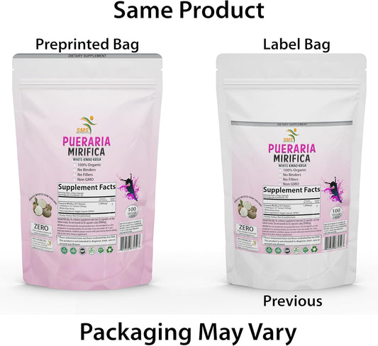 Premium Organic Pueraria Mirifica Extract Powder Capsules - 100% Potent 10:1 Formula, 2000mg Daily, Non GMO, Vegan - From Thailand