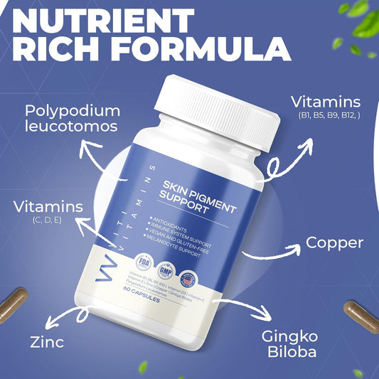 Skin Pigment Support Supplement with Polypodium Leucotomos for Faster Results - 60 Capsules
