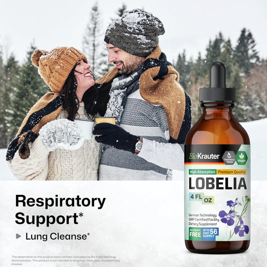 Vegan BIO KRAUTER Lobelia Tincture for Respiratory Support - Alcohol & Sugar Free Extract - 4 Fl.Oz. Bottle