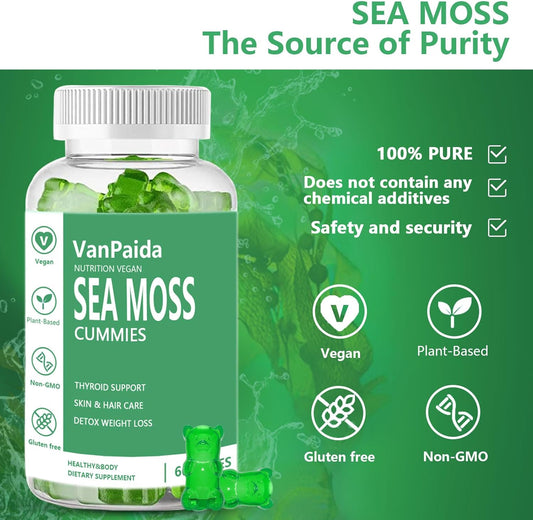 Vegan Sea Moss Gummies with Bladderwrack & Burdock Root for Immune & Joint Support