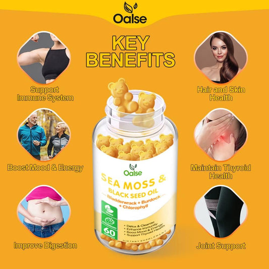 8-in-1 Sea Moss Gummies with Chlorophyll, Bladderwrack, Burdock Root, Vitamin C & D3, Zinc, Black Seed Oil - Immune Support & Energy Boost - Adults & Kids - 1-PackVendor:OALSERegular price $112.28 AUDRegular priceUnit price / per-