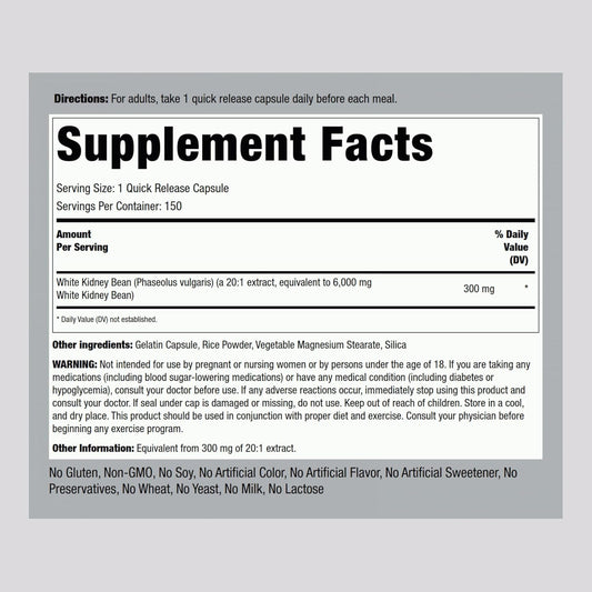 Piping Rock White Kidney Bean Extract 6000mg - 150 Capsules - Non-GMO & Gluten FreeVendor:Piping RockRegular price $94.36 AUDRegular priceUnit price / per-