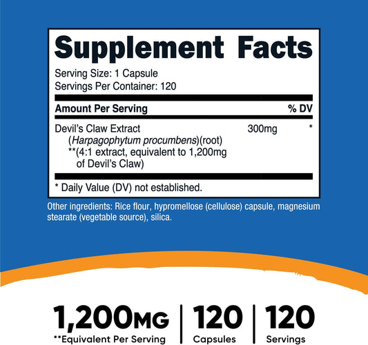 Nutricost Devils Claw 1200mg Equivalent - 120 Veggie Caps, Non-GMO, Gluten Free, Vegetarian FriendlyVendor:NutricostRegular price $95.01 AUDRegular priceUnit price / per-