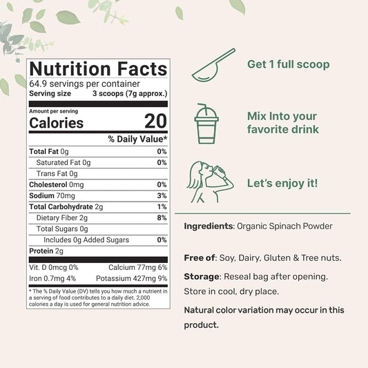 Organic Spinach Powder - 1lb, Freeze Dried from Whole Leaf, Rich in Thylakoids & Chlorophyll - Non-GMO, Vegan-Friendly, Multivitamin-RichVendor:Micro IngredientsRegular price $124.53 AUDRegular priceUnit price / per-