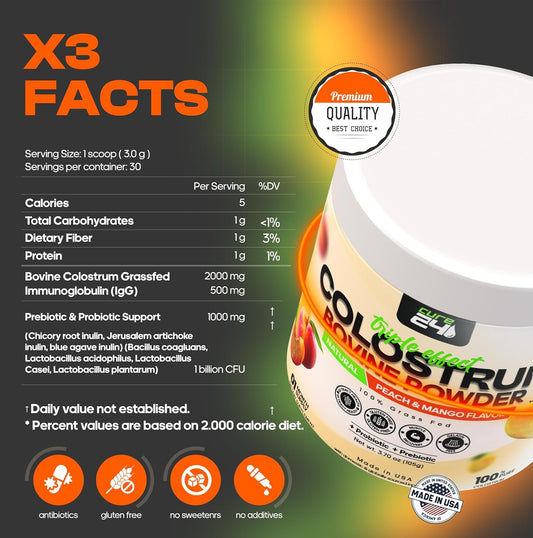 Pure Grass Fed Bovine Colostrum Powder Supplement with Probiotic & Prebiotic - Peach-Mango Flavor - High IgG - Made in USAVendor:Cure24Regular price $107.34 AUDRegular priceUnit price / per-