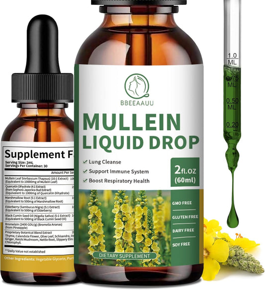 BBEEAAUU Mullein Drops and Soursop Graviola Capsules for Natural Respiratory Support