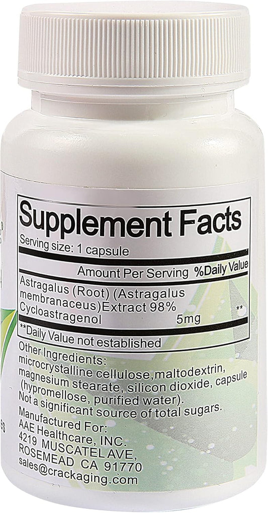Highly Absorbent Cycloastragenol Capsules for Anti-Aging & Immunity Support - 98% Purity, 5mg, 30 Count