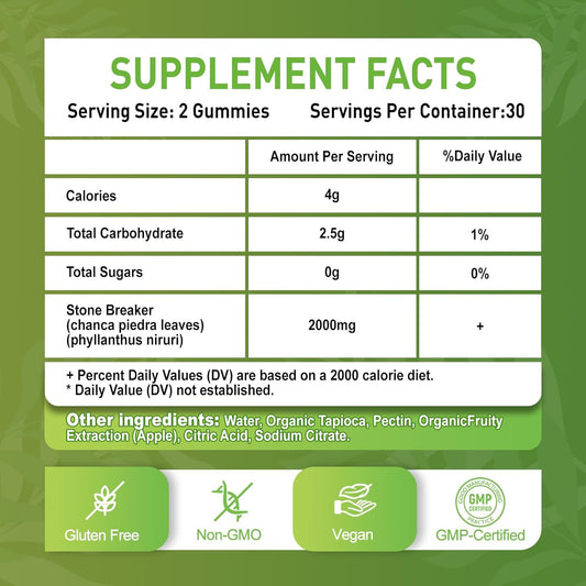 Organic Chanca Piedra Stone Breaker Gummies - Kidney & Gallbladder Health Supplement (2 Pack), Sugar Free, Vegan, Non-GMO, Apple Flavor