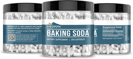 200 Earthborn Elements Baking Soda Capsules for Sodium Bicarbonate Supplementation