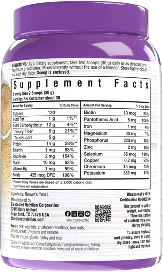 Bluebonnet Nutrition Super Earth Brewers Yeast Powder - 2 lb - Whole Food Super Food Source for Vitamins - Vegan, Vegetarian, Non GMO, Gluten Free, Soy Free, Kosher - Great Tasting