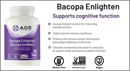 AOR Bacopa Enlighten Supplement - 300mg Ayurvedic Bacopa Monnieri, Vegan Capsules (60 Servings)
