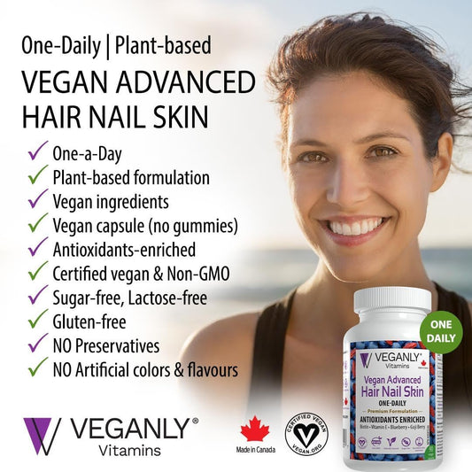 Vegan Hair, Skin & Nail Vitamins - Antioxidant Enriched One-Daily Supplement, 90 Veggie Caps - Plant Based with Biotin & Superfoods - Promotes Healthy Hair, Skin, and Nails