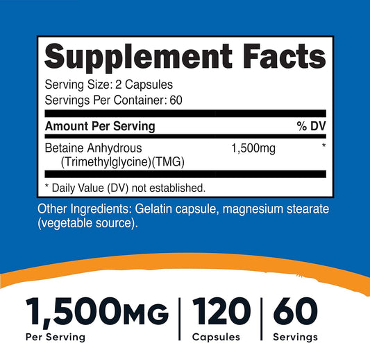 2 Bottles of Nutricost Betaine Anhydrous Caps 1500mg - 60 Servings Each - Total 120 Servings