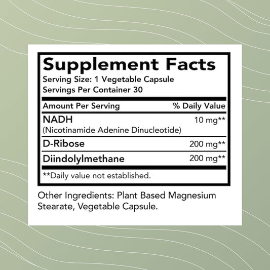 Dr. Harris Essentials NADH + DIM Supplement for Energy and Neurotransmitter Health - Plant-Based Formula for Mental Clarity, Concentration, and Memory Boost - 30 Capsules