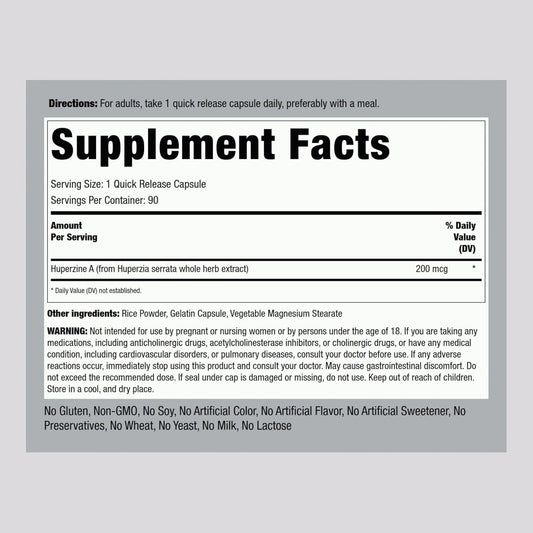 Huperzine A Supplement 200mcg 90 Capsules Non-GMO Gluten Free by Piping Rock