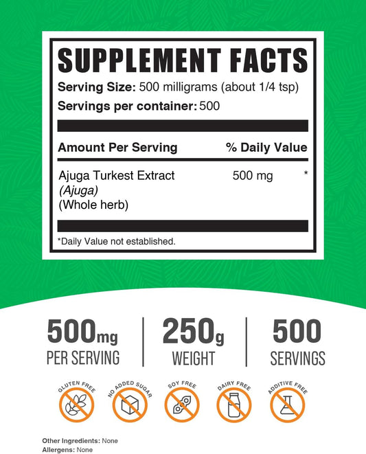 Ajuga Turkestanica Extract Powder - Herbal Dietary Supplement, Pure & Gluten-Free, 500mg per Serving, 250g (8.8oz) - Pack of 1