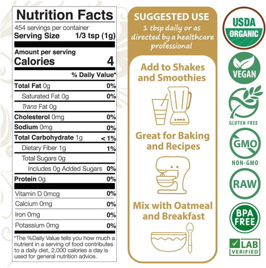 USDA Organic Certified Ashwagandha Powder - 100% Pure Superfood Supplement for Organic Living - Mother Nature Organics - Non-GMO, Vegan, Gluten-Free - Raw Adaptogen Herb (1lb Bag)
