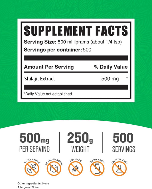 BulkSupplements.com Shilajit Extract Powder - 500mg Fulvic Acid Supplement, Gluten Free - 250g (8.8 oz) - Pack of 1