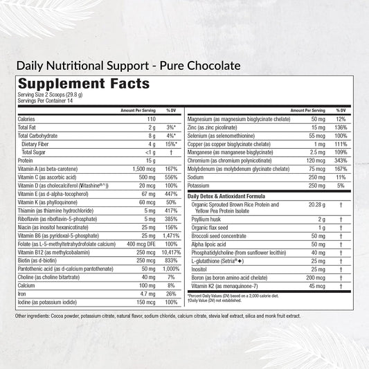 Organic Plant-Based Protein Powder with Multivitamin for Daily Nutritional Support - Boost Energy, Mood, Gut Health, and Skin (Pure Chocolate, 14 Servings)