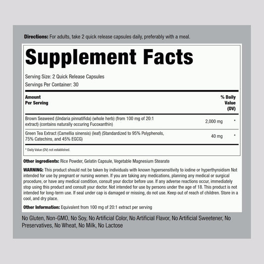 Brown Seaweed Capsules 2000mg | 60 Count | Fucoxanthin Extract Supplement | Non-GMO, Gluten Free by Piping Rock