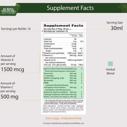 16 fl oz Liquid Supplement with Quercetin, Bromelain, and Mullein for Immune and Sinus Support - Non-Drowsy Herbal Formula
