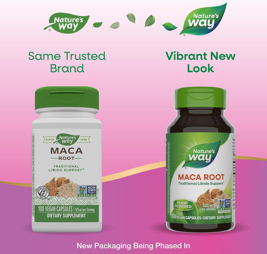 Natural Libido Support with Nature's Way Maca Root Capsules - 525 mg per Serving, Non-GMO, Vegan - 100 Capsules