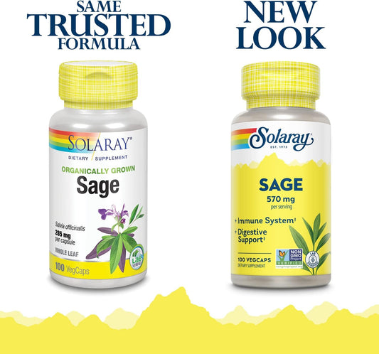 Organic Sage Leaf Capsules - 570mg per Serving - Promotes Healthy Body Odor, Immune Function & Digestive System - 100 Vegetarian Capsules