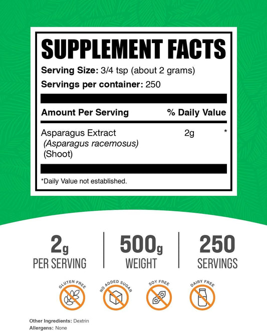 BulkSupplements.com Asparagus Extract Powder - Herbal Asparagus Supplement, Gluten Free - 2000mg per Serving, 500g (1.1 lbs) (Pack of 1)