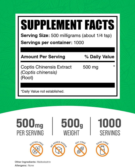Coptis Chinensis Extract Powder - Berberine Golden Thread Supplement - 500mg per Serving - Gluten Free - 500g