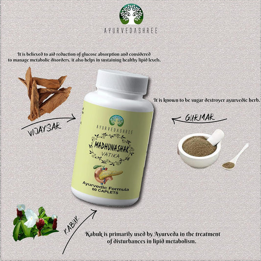 Ayurvedashree Madhunashak Vatika 60 Caplets - 1000 MG Natural Herb Extracts - Ayurvedic Formula