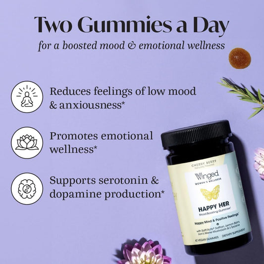 Happy Her Mood Gummies with Clinically-Studied Ingredients for Positive Feelings - Cherry Berry Flavor (60 ct)