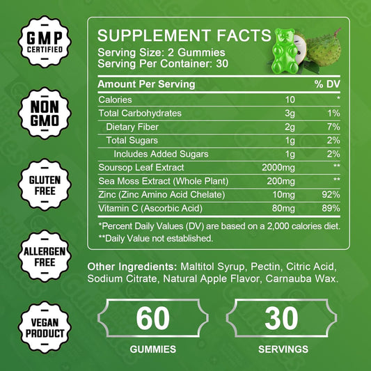 2 Pack GORNVB Soursop Graviola Gummies - 2200mg Extra Strength Extract with Sea Moss, Zinc, Vitamin C - Immunity, Liver, Digestive Support - Gluten Free, Vegan - 120 Gummies