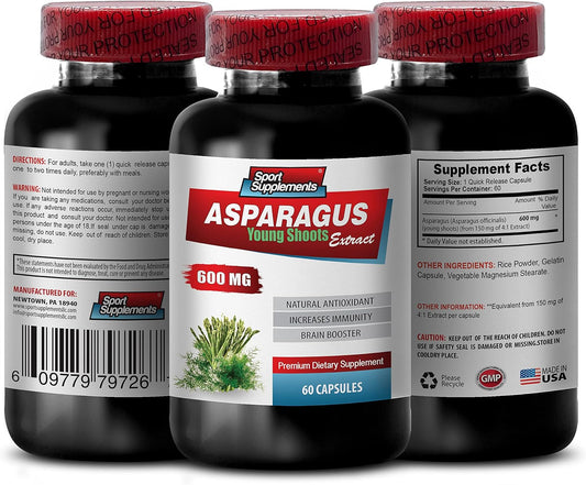 Organic Asparagus Young Shoots Extract Capsules - 600mg Antioxidant Formula - Water Pills - 2 Bottles, 120 Capsules