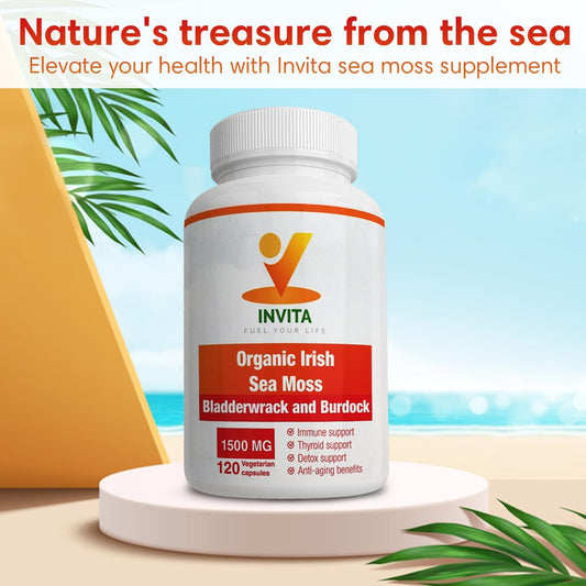 Organic Sea Moss Capsules with Bladderwrack & Burdock Root - 1500mg Superfood Supplement for Immune System, Detox, Joints, Gut Health - 120 Capsules