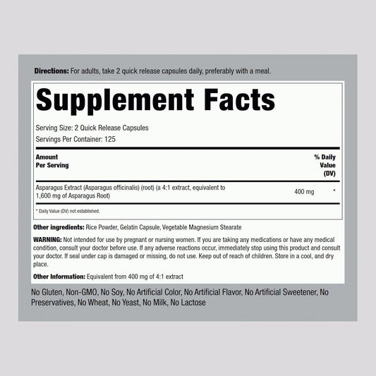 Piping Rock Asparagus Root Extract Supplement 1600mg - 250 Capsules, Non-GMO & Gluten Free