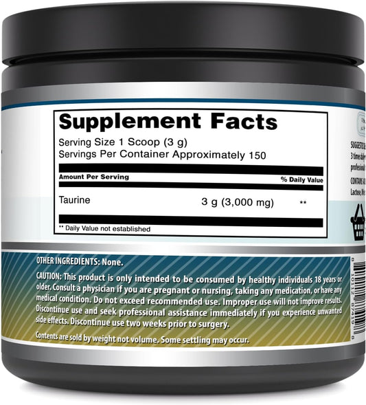 Premium Non-GMO Taurine Powder Supplement | Gluten Free | Made in USA | 1 Lb (454 Grams)