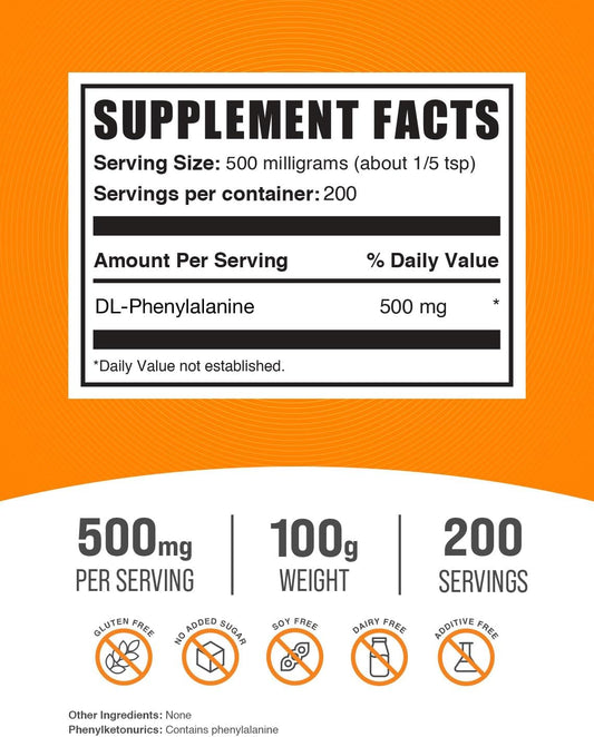 BulkSupplements.com DL-Phenylalanine Powder - DLPA Supplements, 500mg Amino Acid Powder, Gluten Free, 100g (3.5 oz)