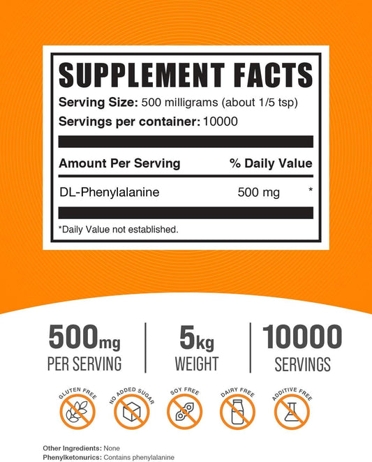 BulkSupplements.com DL-Phenylalanine Powder - 500mg Amino Acid Supplements - Pack of 5, 5kg (11 lbs)