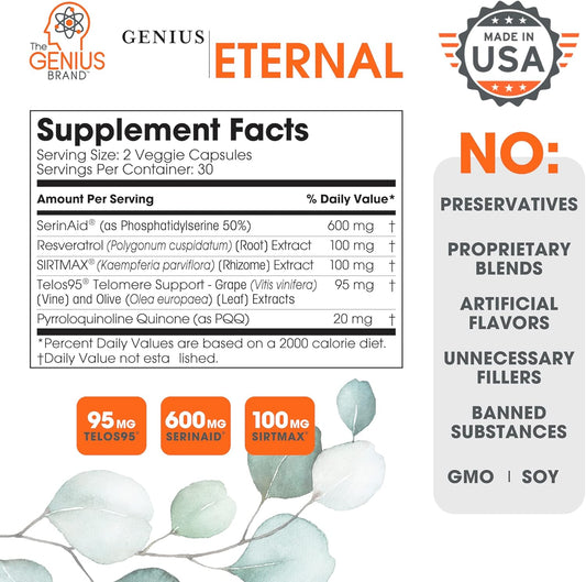 Genius Eternal Anti-Aging Supplement - Telomere Capsules for Longevity & Cellular Repair