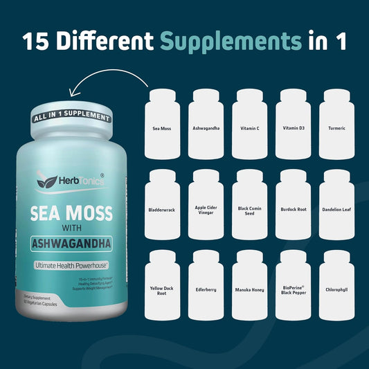 All-in-One Herbtonics Sea Moss Complex Capsules | Immunity Boost, Stress Reduction, Digestive Support | 60 Capsules