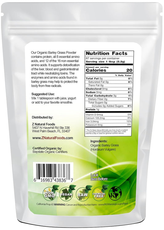 Organic Barley Grass Powder - Antioxidant-Rich Superfood, Energy Booster - 100% Natural, Vegan, Gluten Free - 1 Lb
