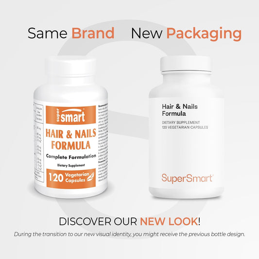 Supersmart Hair & Nails Formula Capsules with Patented Solubilized Keratine, Biotin, Bamboo Extract, MSM, Cynatine HNS Keratin - Non-GMO & Gluten Free - 120 Vegetarian Capsules