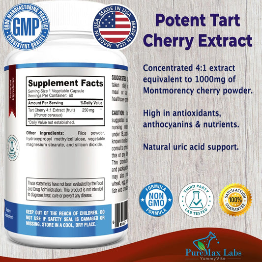 Tart Cherry Extract Capsules - Equivalent to 1000mg Montmorency Cherries - Antioxidant-Rich Uric Acid Support - Non-GMO - 60 Capsules