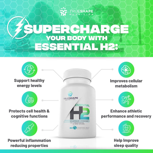 TrueShape Nutrition Essential H2 Fizzy Molecular Hydrogen Tablets - Water Supplement (Unflavored, 60 Servings)