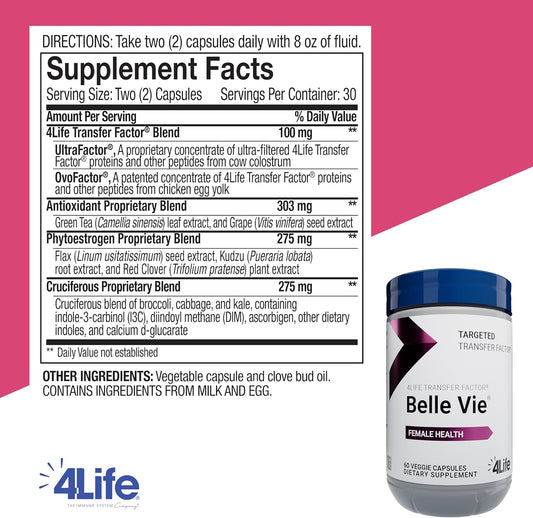 Women's Reproductive Health Support Supplement with Kudzu, Flax, and Red Clover - 60 Veggie Capsules by 4Life Transfer Factor Belle Vie